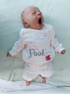 Charlotte in her going home from hospital outfit, bought in faith long before either pregnancy